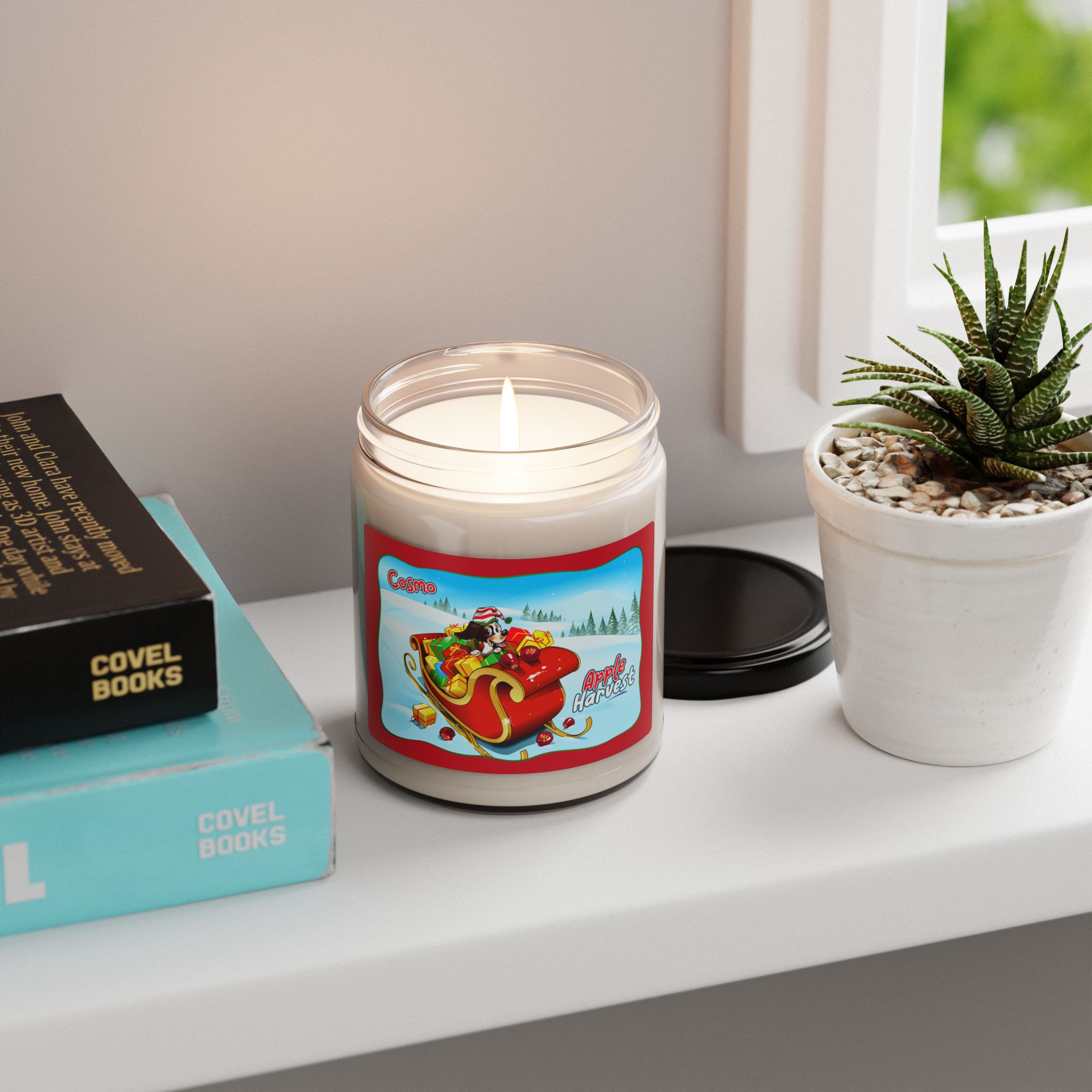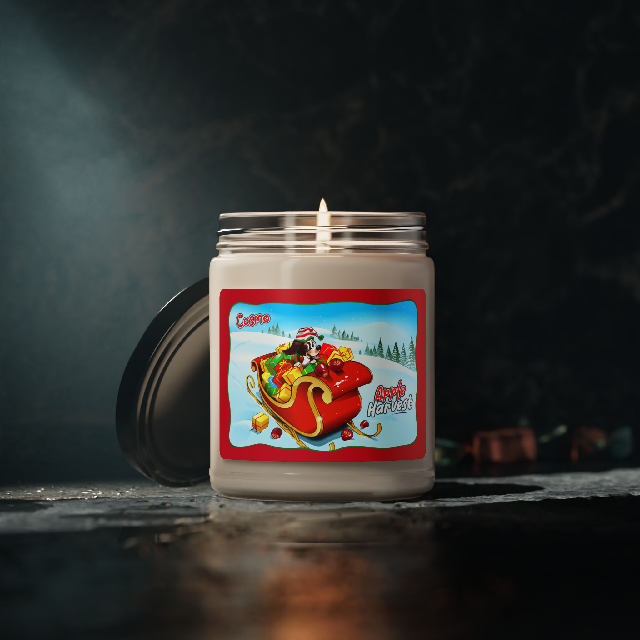 Unwrap the magic of the holiday season with our Christmas Edition of Cosmo’s Apple Harvest Scented Candle. You’ll find Cosmo in his sleigh overflowing with gifts and juicy apples, ready to bring festive cheer to your home. This candle isn’t just about the fragrance; it’s a celebration of the cozy, heartwarming ambiance we all crave during the holidays.
