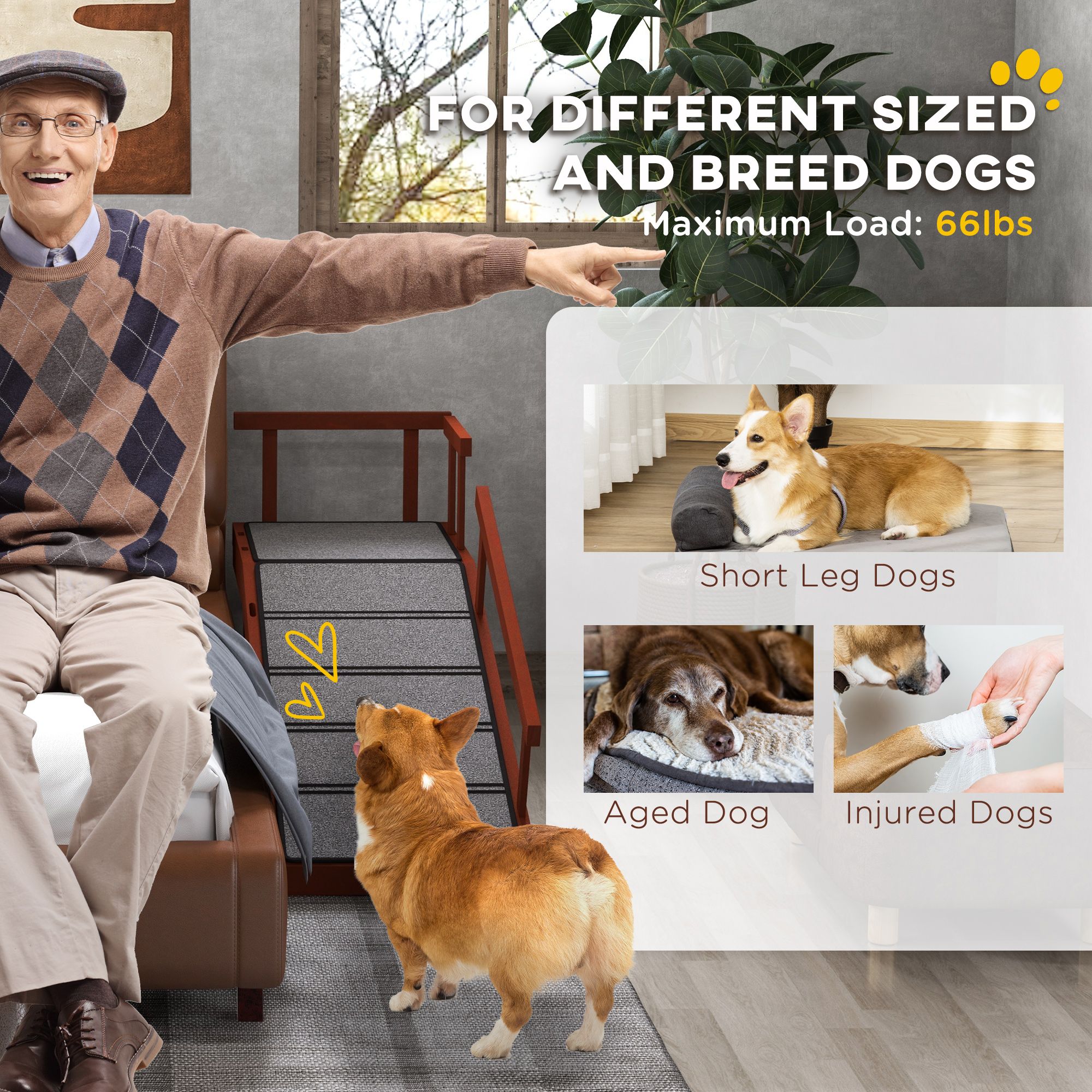 Give your furry friend the gift of easy access with the PawHut Dog Ramp, Dog Stairs for Small, Medium & Large Dogs, Pet Ramp for Bed or Couch with Removable Guardrails, Non-Slip Surface, 49″ Long, Brown. Watching your dog struggle to jump onto the bed or couch is heartbreaking, especially for smaller breeds, seniors, or those with mobility issues like dachshund back problems. This ramp eliminates the strain on their joints and gives them back their independence.