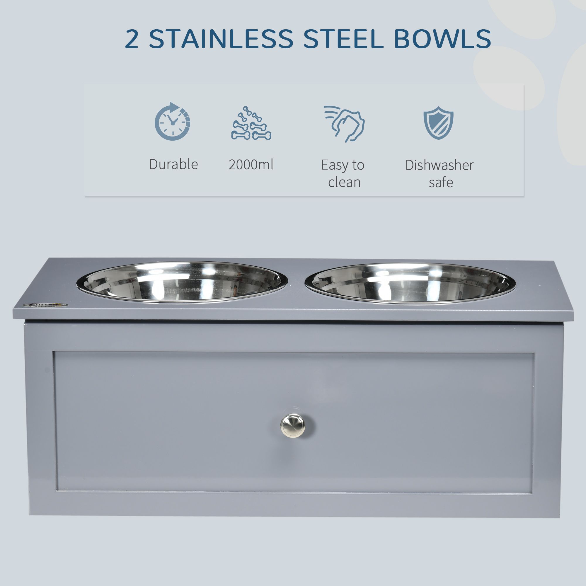 For you, this feeder means a tidier home. Tired of tripping over dog food bags or searching for their favorite toys? The built-in storage cabinet is the perfect solution. It provides ample space to discreetly store up to 33 pounds of dry food, treats, and other pet supplies, keeping everything you need in one organized place. The clean, gray finish and modern design will blend seamlessly with your home decor, turning a messy feeding corner into a chic and functional space. No more clutter, just clean lines and a happy pup.